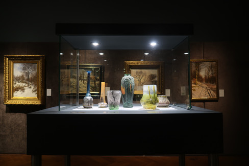 Sergide yer alan bir başka eser grubu da cam objelerden oluşuyor. Bahçe teması, Art Nouveau döneminin en önemli temsilcilerinden Emile Gallé ve Daum Nancy atölyelerinden çıkan cam eserlerde hayat buluyor.